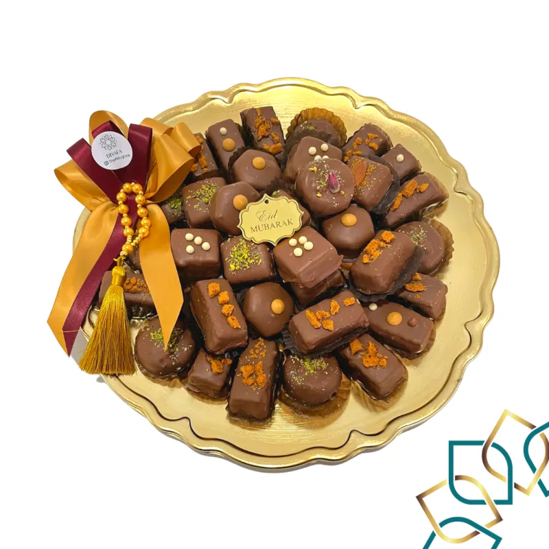 Diyafa Royal Tray made with a selection of premium Belgian Chocolate with delicious fillings inside and handmade Marzipan!